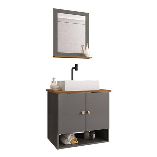 Material da espelheira: MDP de 12 mm no painel e 15 mm na prateleira com espelho de 03 mm de espessura;