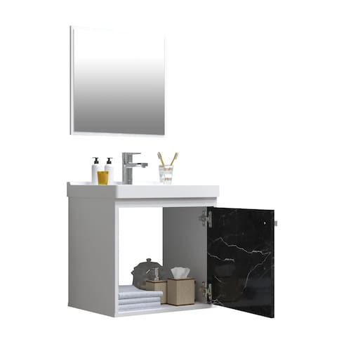 Itens inclusos: 1 gabinete de banheiro, 1 pia e 1 kit de montagem. Não acompanha espelho.