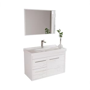 O gabinete suspenso para banheiro é desenvolvido com estrutura em mdf e a cuba em bmc, garantindo mais durabilidade e resistência ao produto.