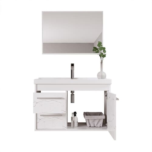 O gabinete suspenso para banheiro é desenvolvido com estrutura em mdf e a cuba em bmc, garantindo mais durabilidade e resistência ao produto.