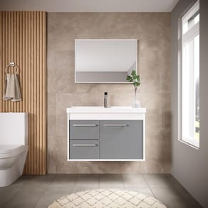 O gabinete suspenso para banheiro é desenvolvido com estrutura em mdf e a cuba em bmc, garantindo mais durabilidade e resistência ao produto.