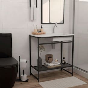Gabinete Banheiro Ferro Iron Black 80x45cm Branco Fosco Gabinete Banheiro Ferro Iron Black 80x45 cm Branco Fosco - Gabinete de Ferro com Tampo e Cuba em Pedra Ardósia Gold