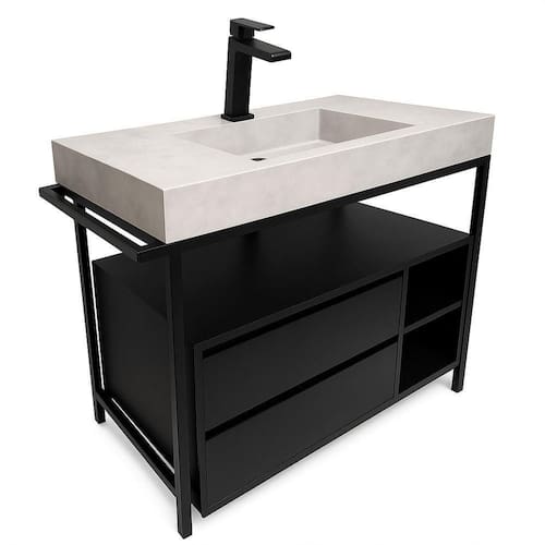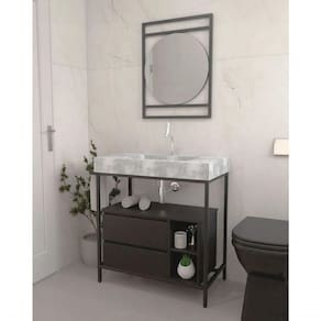 Gabinete Banheiro Ferro Steel Wood 80x45cm Concreto Gabinete Suspenso Banheiro Ferro Steel Wood 80x45 cm Concreto - Gabinete de Ferro com Gavetas em MDF e Cuba de Pedra Ardósia Gold