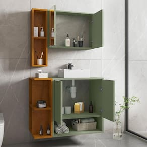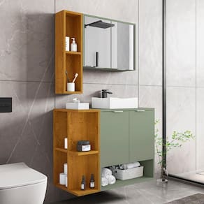 Material da espelheira: MDP de 12 mm no painel e 15 mm na prateleira com espelho de 03 mm de espessura;