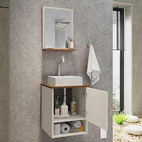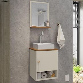 Material do gabinete: MDP de 12 mm no painel e 15 mm na prateleira com espelho de 03 mm de espessura;