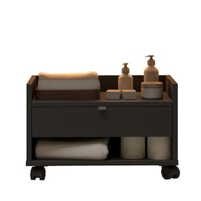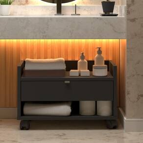 Este gabinete para banheiro combina design moderno e funcionalidade, sendo uma excelente opção para organizar e otimizar o espaço do seu banheiro. Contém 1 porta e 5 nichos, sendo 3 deles externos na parte esquerda do móvel 2 prateleiras