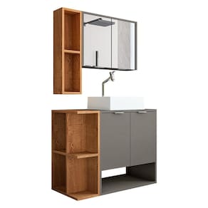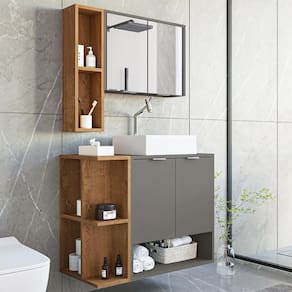 Com um espelho amplo e prateleiras práticas, ela oferece o espaço ideal para organizar seus produtos de beleza e higiene pessoal, mantendo tudo ao seu alcance.
