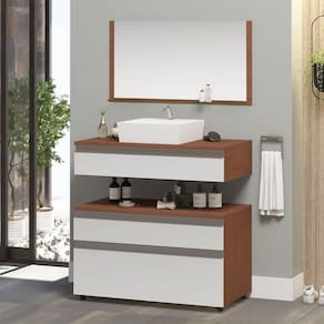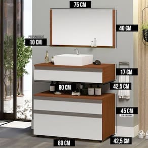 O Gabinete Safira oferece uma solução prática e sofisticada para otimizar o espaço e manter o seu banheiro organizado. A combinação de ambas as partes, superior e inferior, maximiza a funcionalidade e o aproveitamento do espaço, tornando-o ideal para banheiros de todos os tamanhos, com elegância e eficiência.