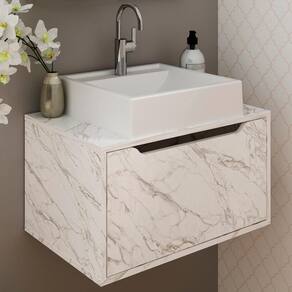 Gabinete Com Cuba Para Banheiro Bn3630x46 Marmore Branco Tecno Mobili Marmore Branco