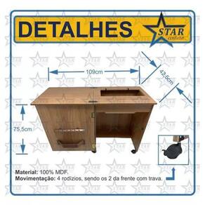Esse móvel é compatível com diversas marcas de máquinas de costura, como Singer, Elgin, Vigorelli e muitas outras. Basta que a máquina tenha as medidas de 37x18cm e os dois furos na parte de trás para encaixe das dobradiças.