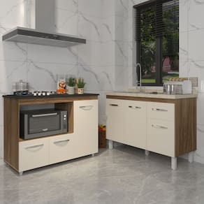 Transforme sua cozinha com o Kit Balcão para Pia 118 cm Aline e Balcão para Cooktop 4 Bocas Alana!