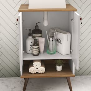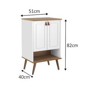Material Principal: MDP; Material da Porta: MDF; Material do Tampo: MDP; Material dos Pés: ABS; Acabamento da Porta: PET; Acabamento dos Pés: Poliéster; Material do Puxador da Porta: Couro; Tipo de Dobradiça/Corrediça da Porta: AçoVendido e entregue por MadeiraMadeira
