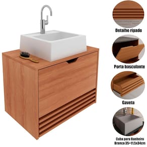 • Material: Gabinete: Estrutura em MDP / Cuba: Mármore sintético