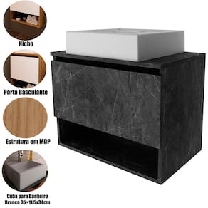 • Material: Gabinete: Estrutura em MDP / Cuba: Mármore sintético