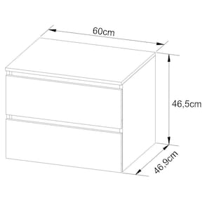 • 1 x Gabinete de Banheiro 60 cm com 2 Gavetas Joana 1 x Cuba para Gabinete de Banheiro Manual de Montagem Acessórios de Montagem