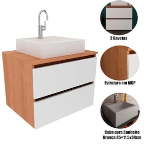 • Material: Gabinete: Estrutura em MDP / Cuba: Mármore sintético