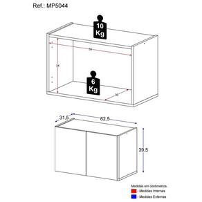 Dimensões do produto montado: Altura: 39,5cm | Largura: 62,5cm | Profundidade: 31,5cm *Você pode consultar as medidas detalhadas na imagem técnica do produto.