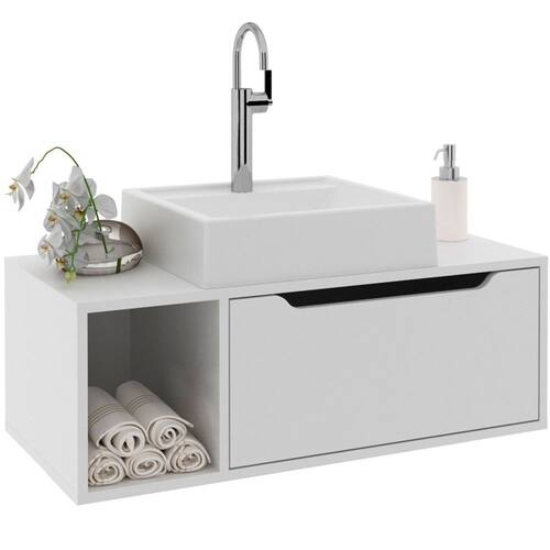 Gabinete de Banheiro 80 cm com Cuba 1 Porta e Nicho - Branco