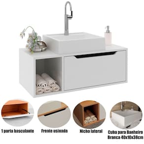 • Material: Gabinete: Estrutura em MDP / Cuba: Mármore sintético
