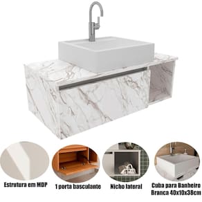 • Material: Gabinete: Estrutura em MDP / Cuba: Mármore sintético