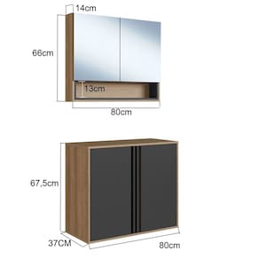 O Conjunto para banheiro CJ8040 é essencial para manter a organização e deixar seu espaço mais estiloso. O balcão possui duas portas e uma prateleira interna, sendo bem espaçosos e possuindo um design clean. Já a espelheira é ideal para organizar itens de higiene e beleza em seu interior. Além de funcional, o conjunto contribui para complementar a decoração, economizando espaço em banheiros menores e mantendo os itens organizados e acessíveis. Não acompanha cuba. Acabamento da Porta: Finish Foil Acabamento da Prateleira: Finish Foil Acompanha Cuba: Não Acompanha Gaveteiro: Não Acompanha Manual de Instalação: Sim Acompanha Parafusos Para Fixação Na Parede: Sim Acompanha Tampo: Sim Altura do Espelho: 49 cm Ambiente Principal: Banheiro codigo_ean: 7900288232304 Complexidade da Montagem: Média: pode ser montado por mais de uma pessoa e/ou necessite de maior conhecimento para montagem Cor: Mel/Grafite Cor da Porta: Preto Cor do Produto: Mel/Grafite Cor Flex: Não Cor Interna: Mel Escala de Brilho: Fosco Escala de Brilho da Porta: Fosco Escala de Brilho da Prateleira: Fosco Espessura do Espelho: 3 mm Formato do Espelho: Retangular Formato Espelheira: Retangular Furação para Cuba e Torneira: Não Itens Inclusos: 1 Espelheira, 1 Gabinete. Kit Ferragens e Manual de Montagem Largura do Espelho: 39 cm Linha ou Coleção: Antônia Manual de Montagem e Instalação: https://product-hub-prd.madeiramadeira.com.br/670659140/documents/ccd681fd-e59a-4385-b686-6b318a75898d3171562522517566458629345.pdf Marca: FAEMA Material da Porta: MDP Material da Prateleira: MDP Material do Tampo: MDP Material Principal: MDP Medida da Espelheira (A x L x P): 66x80x14 Medida do Gabinete (A x L x P): 67,5x80x37 Montagem Flex: Não Necessita Montagem: Sim Origem do Produto: Nacional Peso: 32,5 kg Peso Máximo por Prateleira: 5 kg Possui Espelheira: Sim Possui Gabinete: Sim Possui Gavetas: Não Possui iluminação: Não Possui Nichos: Sim Possui Pés: Suspenso Possui Porta de Vidro: Não Possui Recorte No Tampo Para Cuba: Não Possui Recorte No Tampo Para Misturador: Não Possui Rodízio: Não Possui Sifão: Não Possui Tampo: Sim Possui Tampo de Vidro: Não Produto Montado: Sim Quantidade de Espelhos: 02 Espelhos com Tamanhos Iguais Recomendações de Uso, Manutenção e Limpeza: Para a limpeza do móvel utilizar pano levemente umedecido com água Sistema de Montagem: Parafusos, cavilhas e minifix Suporta Até (kg): 45 kg Suporte para Toalheiro: Não Tamanho do Espelho (A x L): 49x39 Tamanho do Gabinete: Médio: de 60cm a 80cm de largura Tipo de Dobradiça/Corrediça da Porta: Metálica Tipo de Fixação do Espelho: Silicone Tipo de Gabinete: Gabinete Suspenso Tipo de Porta: Bater Tipo de Puxador da Porta: Cava Marca: Não Informado