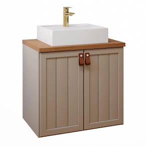 Produto: Gabinete de Banheiro Alure com Cuba 60cm Cappuccino/Freijo - MGM Cor: Cappuccino/Freijo Fabricante: MGM Peso: 20,900 Altura (cm): 66,5 Largura (cm): 61,3 Profundidade (cm): 45,1 Linha: DECOR Marca: MGM Móveis Modelo: Alure Estrutura: 100 % MDF Acabamento: Pintura UV Garantia: 3 Necessita Montagem ?: Não Quantidade de Portas: 2 Quantidade de Gavetas Externas: Não Quantidade de Gavetas Internas: Não Quantidade de Prateleiras: 1 Possui Toalheiro ?: Não porta com Pistão a Gás: Não Quantidade de Puxadores: 2 Material do Puxador: COURO Corrediças: N/T Dobradiças: Metálicas Possui Vidro: N/T Acompanha Pia: Sim Material da Pia: Mármore Sintético Dimensões da Pia: 12,3 x 79,3 x 36