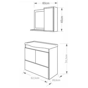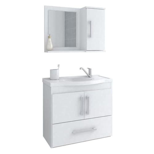 Produto: Gabinete de Banheiro com Cuba e Espelheira Atenas 65cm Branco - MGM Cor: Branco Fabricante: MGM Peso: 19,5 Altura (cm): 56,5 Largura (cm): 63,5 Profundidade (cm): 32,5 Linha: Soft Marca: MGM Móveis Modelo: Atenas Estrutura: 100 % MDF Acabamento: Pintura UV Garantia: 3 Necessita Montagem ?: Não Quantidade de Portas: 3 (1 na espelheira) Quantidade de Gavetas Externas: 1 Quantidade de Gavetas Internas: N/T Quantidade de Prateleiras: 2 na espelheira Possui Toalheiro ?: N/T porta com Pistão a Gás: Não Quantidade de Puxadores: 4 Material do Puxador: Polipropileno Corrediças: Telescópicas Dobradiças: Metálicas Possui Vidro: Não Acompanha Pia: Sim Material da Pia: Mármore Sintético Dimensões da Pia: 9,7 x 63,1 x 32,5