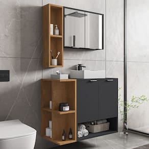 Conteúdo da Embalagem: 1 Espelheira, 1 Gabinete de Banheiro, 1 Cuba de Pia.