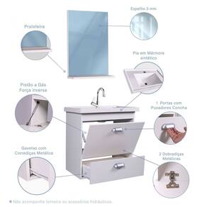 A Boatto Móveis oferece produtos inovadores de alta qualidade e estilo para atender as necessidades de seus clientes. Acabamento da Cuba: Pintura UV Acabamento da Gaveta: Pintura UV Acabamento da Porta: Pintura UV Acompanha Cuba: Sim Acompanha Manual de Instalação: Sim Acompanha Parafusos Para Fixação Na Parede: Sim Acompanha Válvula: Não Ambiente Principal: Banheiro codigo_ean: 7900288004550 Cor: Branco Cor da Cuba: Branco Cor do Produto: Branco Cor Interna: Branco Escala de Brilho: Semi-Fosco Escala de Brilho da Gaveta: Semi-Fosco Escala de Brilho da Porta: Semi-Fosco Formato da Cuba: Retangular Gaveta com Chave: Não Itens Inclusos: 1 Espelheira Linha ou Coleção: Kit Guarulhos Manual de Montagem e Instalação: https://product-hub-prd.madeiramadeira.com.br/959357/documents/8cedbffa-f03c-40f5-ae60-6dfecdb944fa2458101598217290029401653.pdf Marca: Boatto Móveis Material da Cuba: Mármore Sintético Material da Gaveta: MDP Material da Porta: MDP Material do Puxador da Gaveta: Poliestireno Material do Puxador da Porta: Poliestireno Material Principal: Polipropileno Medida da Cuba (C x L x P): 36,50cm X 53cm Necessita Montagem: Não Origem do Produto: Nacional Peso: 16,5 kg Peso Máximo por Gaveta: 5 kg Possui Espelhos: Sim Possui Nichos: Não Possui Pés: Suspenso Possui Prateleiras: Não Possui Recorte No Tampo Para Cuba: Não Possui Recorte No Tampo Para Misturador: Não Possui Sifão: Não Possui Tampo: Não Produto Montado: Sim Quantidade de Gavetas: 01 Recomendações de Uso, Manutenção e Limpeza: Pano umedecido Resistente à Chuva: Não Sapatas Niveladoras: Não Suporta Até (kg): 16 kg Tamanho do Gabinete: Pequeno: Abaixo de 60cm de largura Tipo de Corrediça da Gaveta: Metálica Simples Tipo de Cuba: Sobrepor/Embutir/Apoio Tipo de Dobradiça/Corrediça da Porta: Metálica Tipo de Gabinete: Gabinete Aéreo Tipo de Móvel para Banheiro: Gabinete Tipo de Móvel para o Banheiro: Gabinete de Banheiro Tipo de Porta: Basculante Tipo de Puxador da Gaveta: Externo Tipo de Puxador da Porta: Externo Válvula indicada: Comum