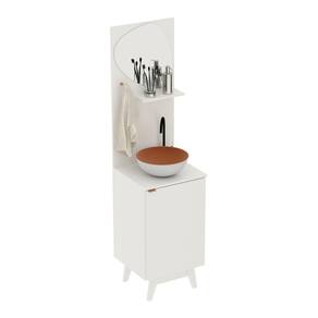 Características: - Produzido em MDP de 15mm, unindo leveza e robustez na medida certa. - Acabamento em pintura UV: mais resistência e beleza por muito mais tempo. - Espelho em vidro de 3mm que amplia o espaço e valoriza a iluminação do ambiente. - 1 porta com prateleira interna para manter tudo organizado e sempre à mão. - Suporte para toalhas: mais praticidade na rotina. - Pés no estilo retrô em PVC, que elevam o visual e facilitam a limpeza. - Puxador metálico prático e minimalista. - Montagem reversível: a porta pode ser montada com abertura para o lado esquerdo ou direito do móvel.