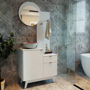 Gabinete de Banheiro com Espelho 80cm 2 Portas e 1 Gaveta Flex Retrô Multimóveis CR10154 - Branco