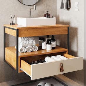 Apresentamos o Gabinete Harley com Cuba Dalla e Espelho Castanheira, perfeita para adicionar um toque de elegância e funcionalidade ao seu banheiro. O gabinete com seu acabamento traz um toque de sofisticação ao seu ambiente, por outro lado a cuba e o espelho traz um design moderno e funcional. Esse conjunto é a escolha ideal para adicional um toque de estilo e funcionalidade.