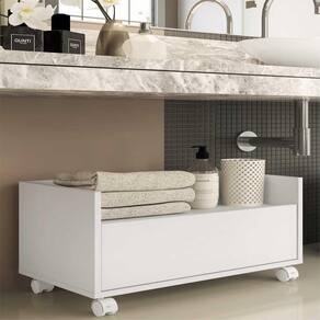 O Gabinete Balcão Banheiro 80 cm com Rodízios Multimóveis é uma solução prática para você aproveitar aquele espaço restrito e complementar seu ambiente. Produzido em MDP com acabamento acetinado (cerca de 20% de brilho), que garante maior durabilidade e facilidade na limpeza, possui 1 gaveta com amplo espaço interno e corrediças metálicas que proporcionam mais leveza no manuseio. Os rodízios facilitam a movimentação do móvel na hora da limpeza. Seu design clean permite que ele seja utilizado em diferentes ambientes, adaptando-se conforme sua necessidade.