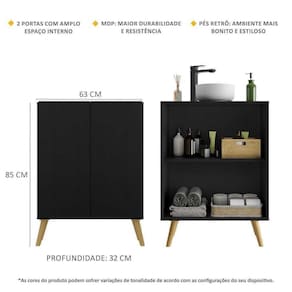 Gabinete De Banheiro Retrô Multimóveis 63 Cm Com 2 Portas Fg5006 Preto/natural