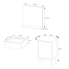 O Kit para Banheiro é a escolha ideal para transformar o seu espaço em um ambiente elegante e organizado. Com um design atual, ele oferece não apenas beleza, mas também funcionalidade, contribuindo para um banheiro agradável e útil. Produzido com materiais de alta qualidade, o kit garante durabilidade e resistência, criando um ambiente harmonioso e agradável para o seu dia a dia. CARACTERÍSTICAS TÉCNICAS: - Produzida em MDP de 15 mm - Acabamento UV na cor Branco - Cuba em Mármore Sintético - Acompanha Espelho - Porta com Dobradiça Metálica - Puxador tipo Cava - Balcão com Pés Estilo Retrô *Kit Composto por Gabinete (3641), Espelheira (3642) e Cuba (3630) INFORMAÇÕES TÉCNICAS: 3641: Alt. 80 cm x Larg. 45 cm x Prof. 38,7 cm x P. 12,3 kg 3642: Alt. 46,5 cm x Larg. 45 cm x Prof. 14 cm x P. 4,6 kg 3630: Alt. 11,5 x Larg. 35 x Prof. 334 cm P. 5,5 kg INFORMAÇÕES ADICIONAIS: - ATENÇÃO: Não trabalhamos e não nos responsabilizamos pela montagem do móvel. Antes da montagem conferir se o produto está de acordo com o que comprou, produto montado e danificado pela montagem não será aceito troca. Montagem e instalação por conta do comprador. - As imagens ambientadas são meramente ilustrativas e podem apresentar itens que não compõe o produto. As cores do produto podem variar de acordo com o monitor, a iluminação do ambiente ou sua percepção visual. - Limpeza: Deve ser feita com pano macio e seco ou levemente. Não devem ser utilizados abrasivos como palha de aço e objetos cortantes. Garantia para defeitos de fabricação conforme Código de Defesa do Consumidor.