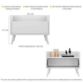 Dimensões do produto montado: Altura: 47cm | Largura: 80cm | Profundidade: 40cm *Você pode consultar as medidas internas na imagem técnica do produto.