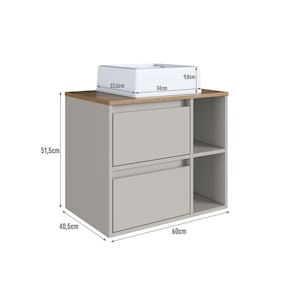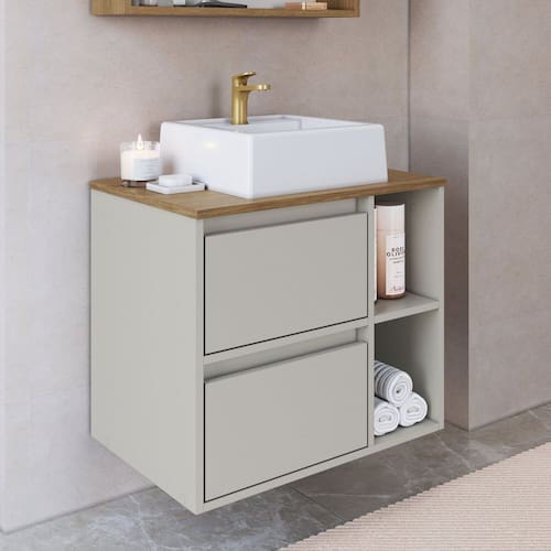 O gabinete de banheiro BH8005 é perfeito para completar a decoração do seu banheiro e organizar seus itens. É composto por 2 nichos, 1 porta basculante e 1 gaveta, que são bem espaçosos. Ideal para organizar suas toalhas, itens pessoais e de higiene. Produto acompanha cuba. Acabamento da Cuba: Liso Acabamento da Gaveta: Finish Foil Acabamento da Porta: Finish Foil Acompanha Cuba: Sim Acompanha Manual de Instalação: Sim Acompanha Parafusos Para Fixação Na Parede: Sim Acompanha Válvula: Não Ambiente Principal: Banheiro codigo_ean: 7900288261823 Complexidade da Montagem: Média: pode ser montado por mais de uma pessoa e/ou necessite de maior conhecimento para montagem Cor: Mel/Arenas Cor da Cuba: Branco Cor da Porta: Bege Cor do Produto: Mel/Arenas Cor Flex: Não Cor Interna: Arenas Escala de Brilho: Fosco Escala de Brilho da Gaveta: Fosco Escala de Brilho da Porta: Fosco Formato da Cuba: Retangular Furação para Cuba e Torneira: Não Gaveta com Chave: Não Itens Inclusos: 1 Gabinete, 1 Cuba, Kit Ferragens e Manual de Montagem Manual de Montagem e Instalação: https://product-hub-prd.madeiramadeira.com.br/867091433/documents/12fe8a5a-f1aa-48be-af05-233b39af9d283270306522517601988473581.pdf Marca: Prodecor Material da Cuba: Mármore Sintético Material da Gaveta: MDP Material da Porta: MDP Material do Tampo: MDP Material Principal: MDP Medida da Cuba (C x L x P): 9,8x34x33,5 Montagem Flex: Não Necessita Montagem: Sim Origem do Produto: Nacional Peso: 22,5 kg Peso Máximo por Gaveta: 5 kg Possui Espelhos: Não Possui Nichos: 02 Possui Pés: Suspenso Possui Portas: Sim Possui Prateleiras: Não Possui Recorte No Tampo Para Cuba: Não Possui Recorte No Tampo Para Misturador: Não Possui Sifão: Não Possui Tampo: Sim Possui Tampo de Vidro: Não Produto Montado: Não Quantidade de Gavetas: 01 Recomendações de Uso, Manutenção e Limpeza: Para a limpeza do móvel utilizar pano levemente umedecido Resistente à Chuva: Não Sapatas Niveladoras: Não Sistema de Montagem: Parafusos, cavilhas e minifix Suporta Até (kg): 20 kg Tamanho do Gabinete: Médio: de 60cm a 80cm de largura Tamanho do Produto: 51,5x60x40,5 Tipo de Corrediça da Gaveta: Metálica Telescópica Tipo de Cuba: Sobrepor Tipo de Dobradiça/Corrediça da Porta: Metálica Tipo de Gabinete: Gabinete Suspenso Tipo de Móvel para Banheiro: Gabinete com Cuba Tipo de Móvel para o Banheiro: Gabinete de Banheiro Tipo de Porta: Basculante Tipo de Puxador da Gaveta: Não Possui - Abertura por Fecho Toque Tipo de Puxador da Porta: Não Possui - Abertura por Fecho Toque Tipo do produto: Gabinete para banheiro Válvula indicada: Valvula padrão 7/8 Marca: Não Informado