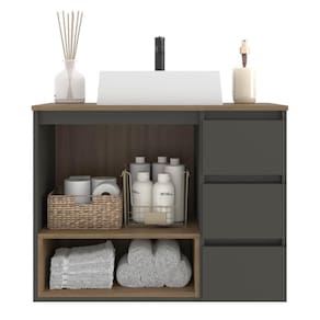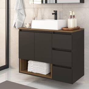 O gabinete de banheiro suspenso BL9280 é produzido em MDP 15mm e acabamento em FF fosco. A estrutura do fundo é em MDF 3mm. Possui 2 portas de bater com dobradiça metálica, 3 gavetas com corrediças metálicas e que suportam 5kg cada e 1 nicho. Necessita fixação na parede e acompanha parafusos para esta fixação. Produto suporta até 40kg. Conteúdo da embalagem: móvel, ferragens e manual de montagem. A fixação das peças e/ou acessórios é feita por parafusos, cavilhas e minifix. Para a limpeza do móvel utilizar pano levemente umedecido. Garantia de 03 meses contra defeitos de fabricação. Medidas do produto (AxLxP): 62x80x40cm. Peso do produto: 27kg. Acompanha cuba branca de sobrepor. Marca: Não Informado