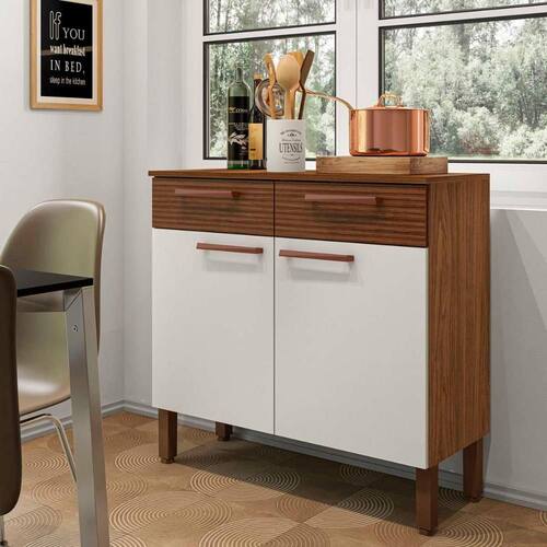 O Balcão Nala é produzido em MDP 15/12 mm proveniente de áreas de reflorestamento. Possui 2 portas e 2 gavetas para melhor organização dos utensílios, além de tampo que pode ser utilizado como bancada.