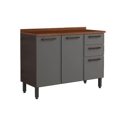 Balcão de Cozinha Estilo 7124 3 Portas e 2 Gavetasc/Tampo 120cm Cinza/Grafite - Bertolini Marca: Bertolini