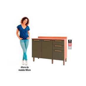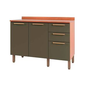 Balcão de Cozinha Gabinete Sálvia 120cm c/ Tampo 2 Portas e 3 Gavetas Freijo/Verde - Telasul