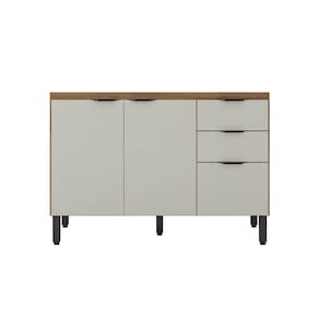 Características: Material da Estrutura: MDP Acabamento: Pintura UV Escala de Brilho: Fosco Possui 3 portas Possui 2 gavetas Possui 1 prateleira Dobradiças em aço Puxadores na cor preta Pés em PVC com rosca Corrediças telescópica Design moderno Acompanha Tampo: Não