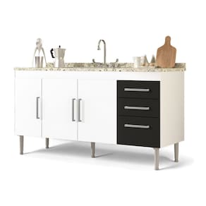 Este gabinete é produzido especialmente para pias de 1,50m, possui 3 gavetas com corrediças metálicas para melhor armazenar os itens de cozinha e conta com uma prateleira profunda completa no seu interior. Possui puxadores modernos e 5 pés para evitar empenamento da base, o gabinete é totalmente fabricado em MDP de 12mm, aumentando a durabilidade, resistência e qualidade do produto. O gabinete NÃO ACOMPANHA o tampo da imagem. Além desses detalhes possui uma fácil montagem.