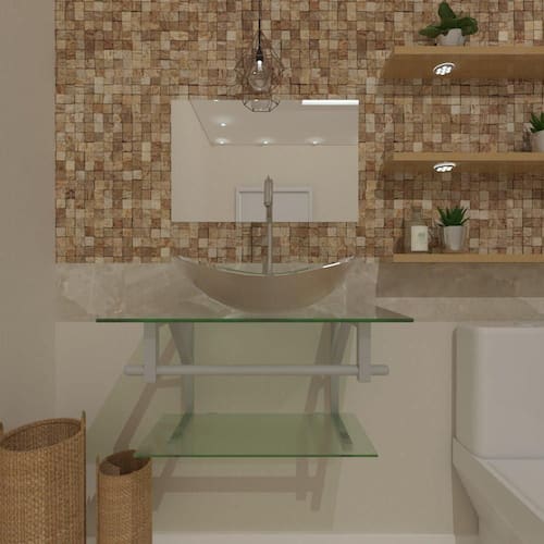 espessuras: - bancada de vidro: 8 mm - cuba de vidro: 10 mm - prateleira bancada: 5 mm - espelheira: 3 mm