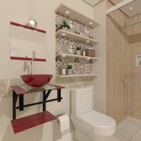 Gabinete De Vidro 40Cm Ap Com Cuba Redonda - Vermelho Cereja
