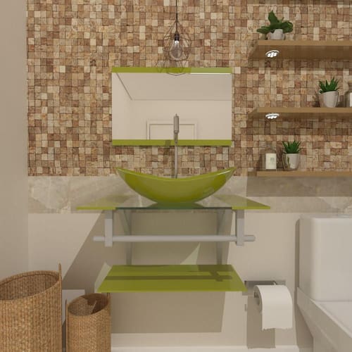 Gabinete de vidro 45cm ac com cuba oval verde oliva + torneira metal Os nossos gabinetes são indicados para projetos arrojados e de muito bom gosto, além de valorizar o seu ambiente com sofisticação em uma decoração de alto padrão, ele consegue usufruir das vantagens que o vidro proporciona e gerar uma durabilidade indiscutível, sem contar que com as várias opções de cores, você sempre poderá encontrar uma cor perfeita para o seu banheiro. Os vidros são pintados com tinta de alta performance o que lhe garante a permanência da cor . Na compra deste super combo 2 em 1, você compra de uma só vez, o gabinete e a torneira, de forma mais fácil, mais rápido e mais barato. Dados técnicos Itens inclusos: - bancada de vidro com furo para torneira 3,5cm diâmetro e válvula click 4,5cm diâmetro ; - cuba de vidro oval; - espelho; - estrutura e porta toalha de aço carbono com pintura eletrostática cinza; - kit parafusos completo para instalação; - prateleira de vidro da bancada; - válvula click. - torneira de metal cromada Dimensões: - bancada de vidro: 45 x 45cm largura x profundidade - cuba de vidro oval: 38 x 26cm comprimento x profundidade - prateleira bancada: 45 x 20cm largura x profundidade - espelheira: 45 x 45cm largura x altura - porta toalha: 45cm largura - válvula: 1 1/4 Espessuras: - bancada de vidro: 8 mm - cuba de vidro: 10 mm - prateleira bancada: 5 mm - espelheira: 3 mm itens inclusos: 01 torneira cromada. Material: liga metálica cromada Conexão de entrada: 1/2 polegada -1/4 volta Altura total da torneira: 37 cm. Altura da queda dágua: 27 cm. Pressão mínima da água: recomenda-se uma pressão de pelo menos 6mtc metros de coluna dágua para melhor performance do produto. de todos os itens: 12 meses conforme política de troca e devoluções . Montagem: montagem e instalação não inclusa na venda ou preço do produto, elas são de inteira responsabilidade do cliente. Imagens ilustrativas. Marca: Não Informado