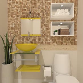 Os nossos gabinetes são indicados para projetos arrojados e de muito bom gosto, além de valorizar o seu ambiente com Sofisticação em uma decoração de alto padrão, ele consegue usufruir das vantagens que o vidro proporciona e gerar uma durabilidade Indiscutível, sem contar que com as várias opções de cores, você sempre poderá encontrar uma cor perfeita para o seu banheiro. Dados Técnicos Itens Inclusos: Gabinete de Vidro 45 cm para banheiro composto de bancada de vidro, cuba de vidro, prateleira da bancada, espelheira, Válvula, estrutura e porta toalha de aço eletrostático e kit parafusos completo para instalação. Dimensões: - Bancada de Vidro: 45 x 45 cm largura x profundidade - Cuba de Vidro: 35 cm diâmetro - Prateleira Bancada: 45 x 25 cm largura x profundidade - Espelheira: 45 x 45 cm largura x altura - Porta Toalha: 45 cm largura - Válvula Espessuras: - Bancada de Vidro: 8 mm - Cuba de Vidro: 10 mm - Prateleira Bancada: 6 mm - Espelheira: 4 mm : 12 meses conforme política de troca e devoluções . Atenção: Preço referente somente ao gabinete, não acompanha torneira, sifão e acessórios. Montagem: Montagem e instalação não inclusa na venda ou preço do produto, elas são de inteira responsabilidade do cliente. Imagens Ilustrativas. Marca: Não Informado