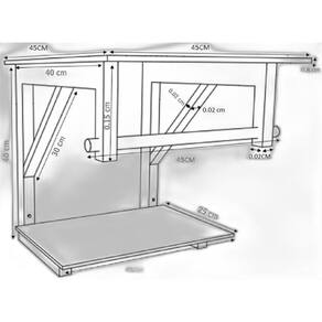 Dimensões: - Bancada de Vidro: 45 x 45 cm largura x profundidade - Cuba de Vidro: 35 cm diâmetro - Prateleira Bancada: 45 x 25 cm largura x profundidade - Espelheira: 45 x 45 cm largura x altura - Porta Toalha: 45 cm largura - Válvula