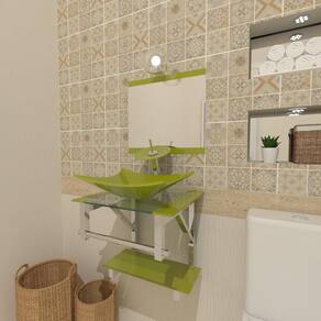 Gabinete De Vidro 45Cm Inox Com Cuba Retangular Verde Oliva - Gabinete de Vidro para Banheiro