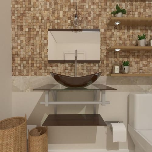 Espessuras: - Bancada de Vidro: 8 mm - Cuba de Vidro: 12 mm - Prateleira Bancada: 6 mm - Espelheira: 3 mm